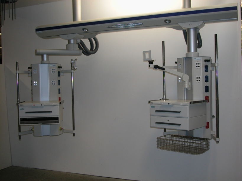 Консоли жизнеобеспечения Консоли жизнеобеспечения потолочные и настенные, поворотные и неподвижные, создают условия для полного обеспечения пациента необходимыми медицинскими средами, оптимизируют труд медицинского персонала. Потолочная консоль жизнеобеспечения позволяет осуществить подводку медицинских сред и разместить необходимую аппаратуру. Прикроватная потолочная консоль жизнеобеспечения – оптимальное решение для реанимационных отделений.