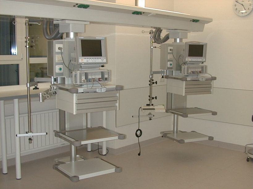 Реанимационная палата, оборудованная потолочными консолями, готова к приему больных. Настенная консоль VIP 2000/2001.Снаружи – уютный вид, внутри – система жизнеобеспечения. |