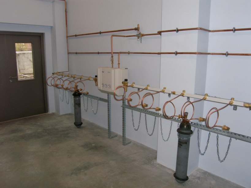 Центральные станции подачи медицинских газов Используюся для централизованной подачи медицинских газов: кислорода (О2), закиси азота (N2O), углекислого газа (СО2), сжатого воздуха и обеспечения центральным вакуумом. Они способствуют быстрой, безопасной и экономной работе с источниками сжатых газов и вакуума, а также позволяют наилучшим образом организовать работу медицинского персонала в отделении анестезии и реанимации.